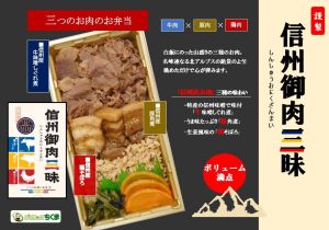 信州ポークカツや信州サーモンの押し寿司など、信州産の食材をふんだんに盛り込みました。